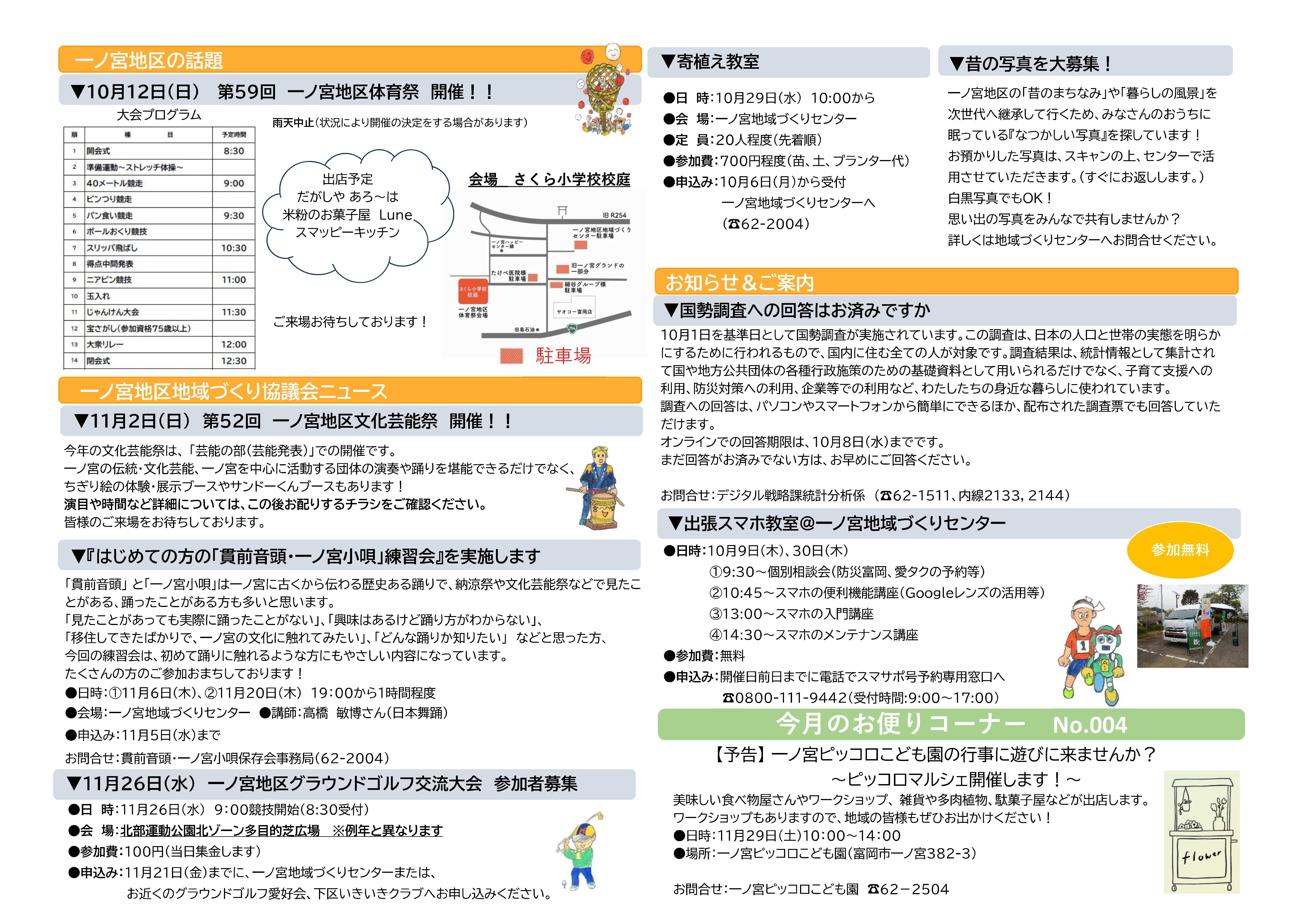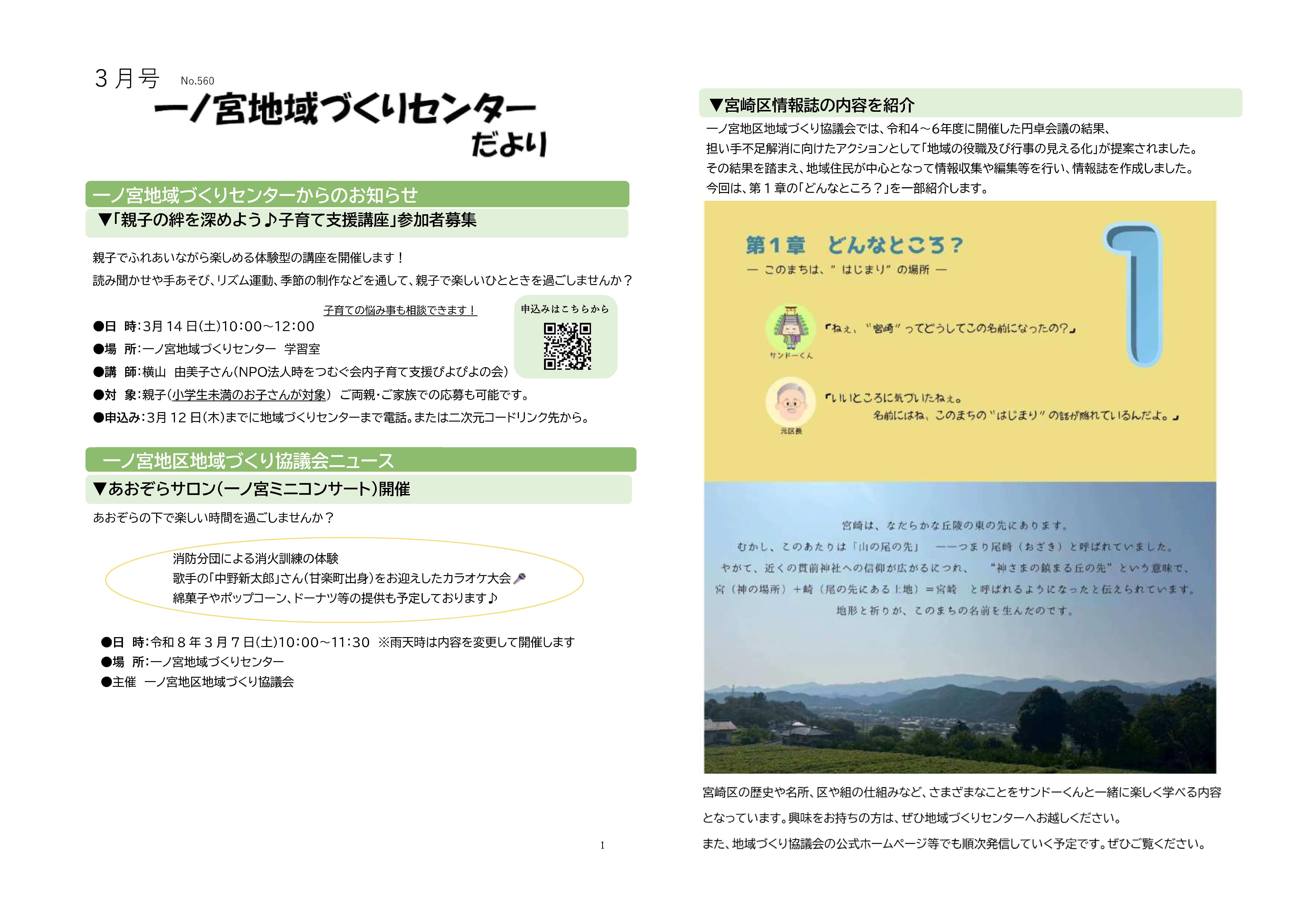 一ノ宮地域づくりセンター職員が毎月、発行しています!一ノ宮の活動が網羅されています♪